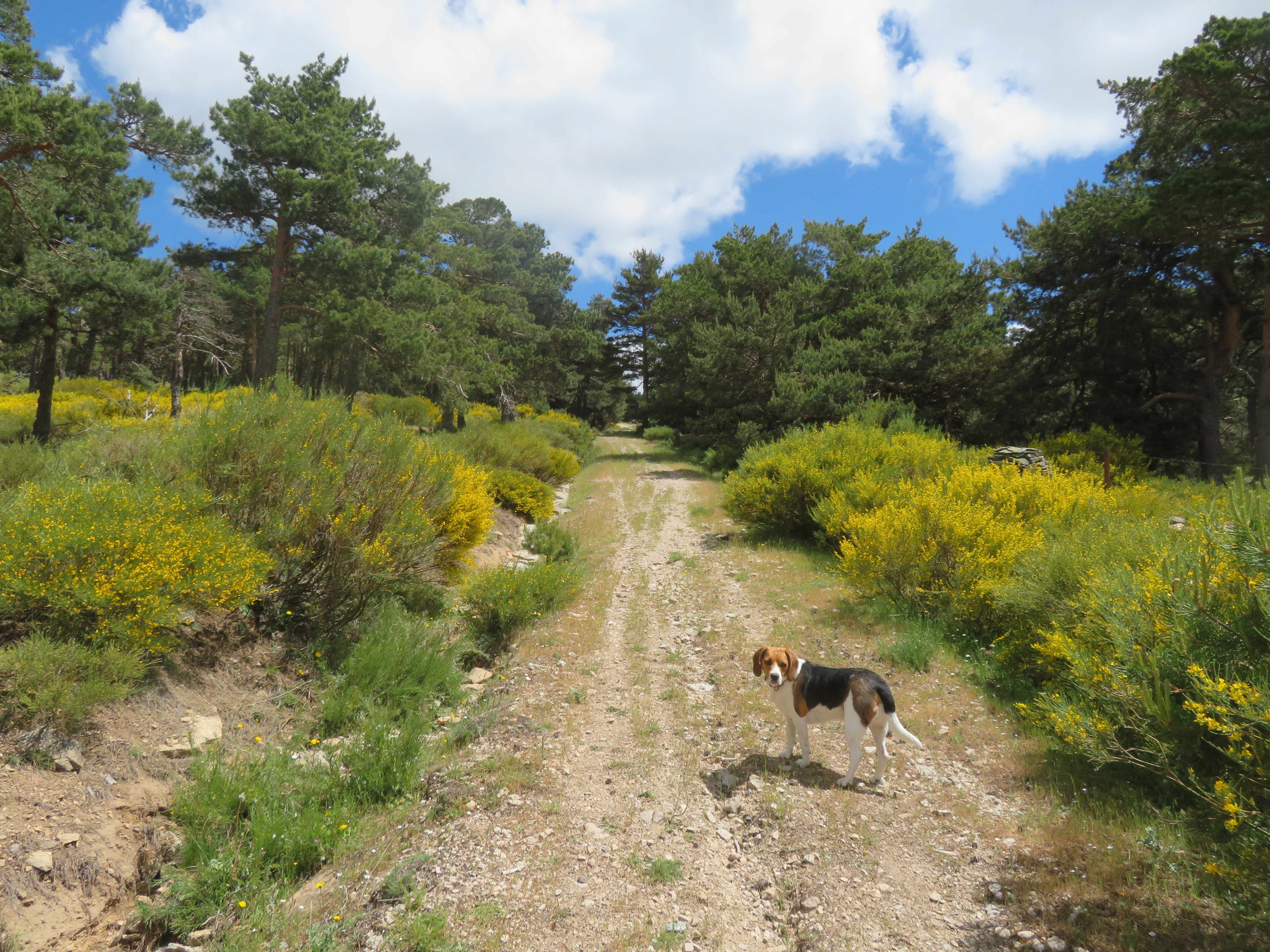 Volveremos a la pista principal y nos llevará hasta la cima de los Tientos desde donde hay buenas vistas, seguiremos recto y daremos con muro y una senda, en nuestro caso, la tomaremos a mano derecha que es de bajada.