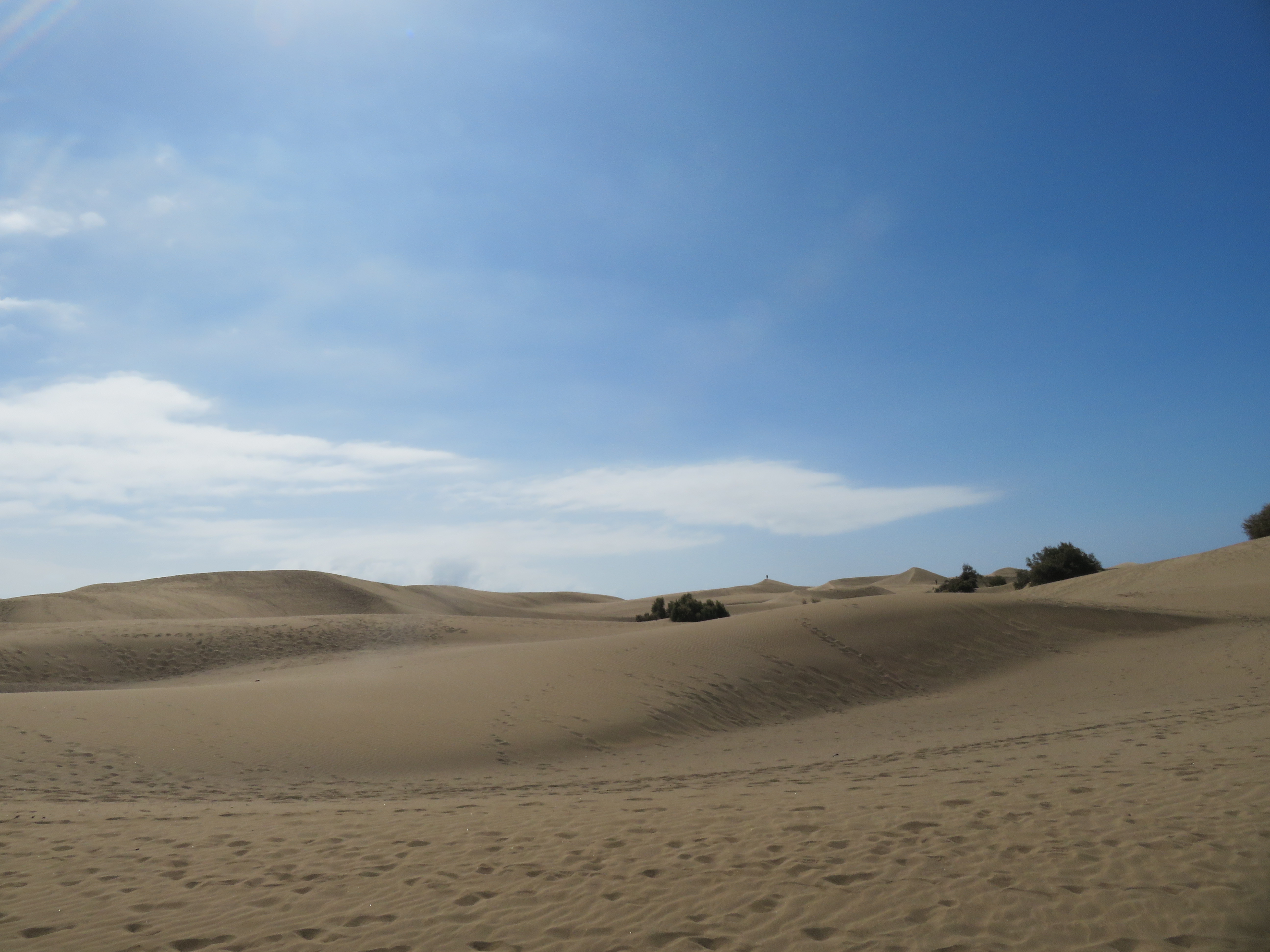 La ruta de hoy la comenzamos desde el mirador de Maspalomas. Aquí hay un mapa donde se pueden hacer varias rutas por las dunas, en nuestro caso, hemos ido por la ruta de balizas rojas y hemos vuelto por las balizas verdes.